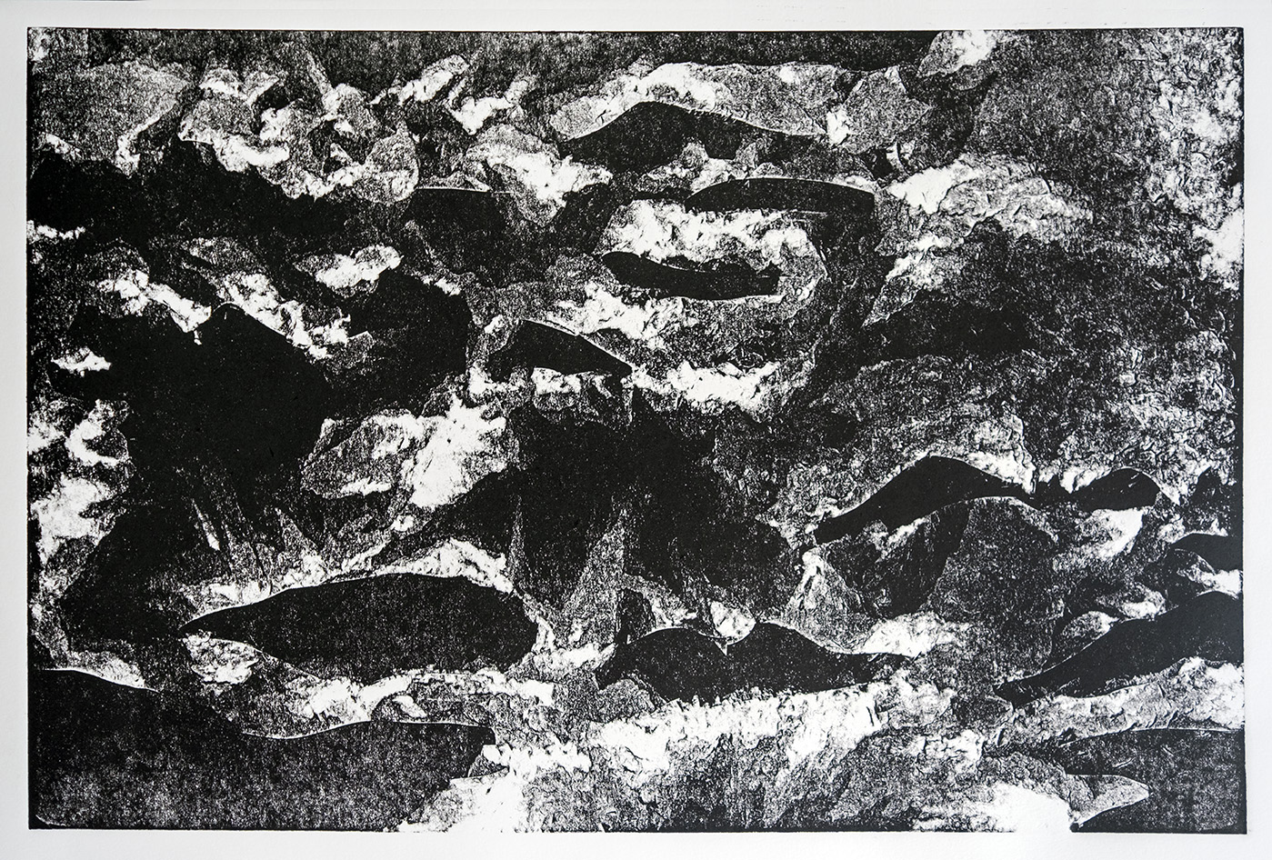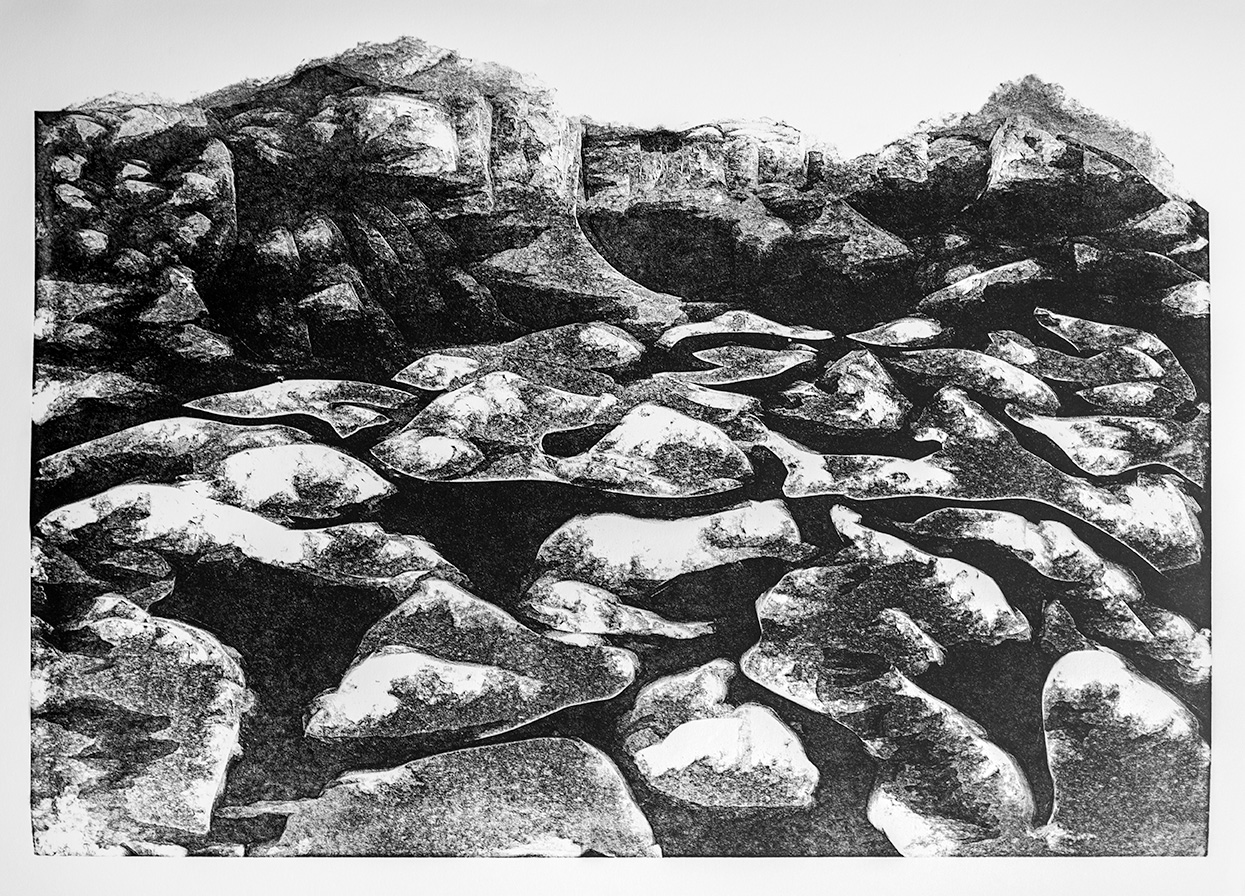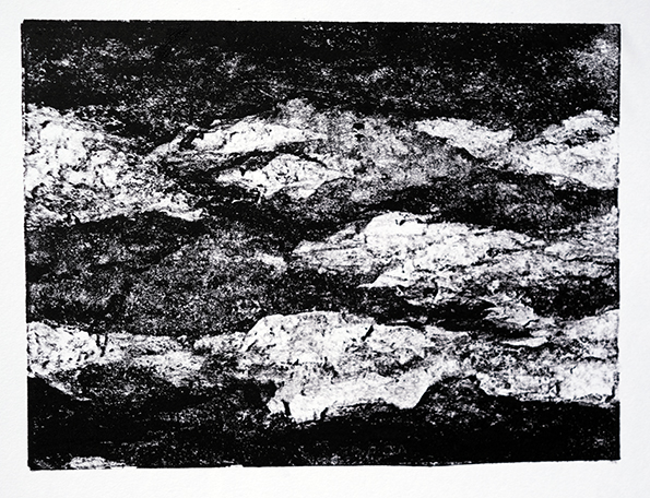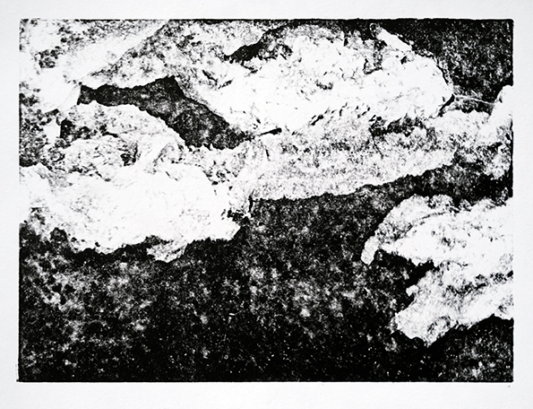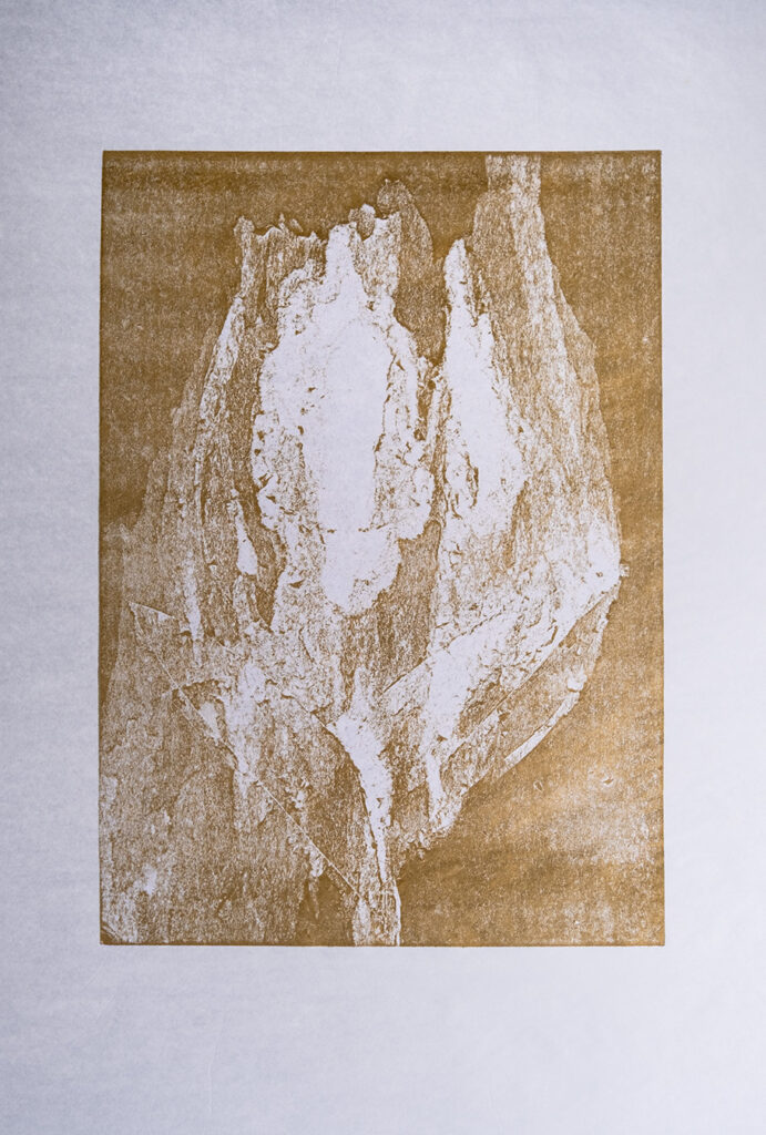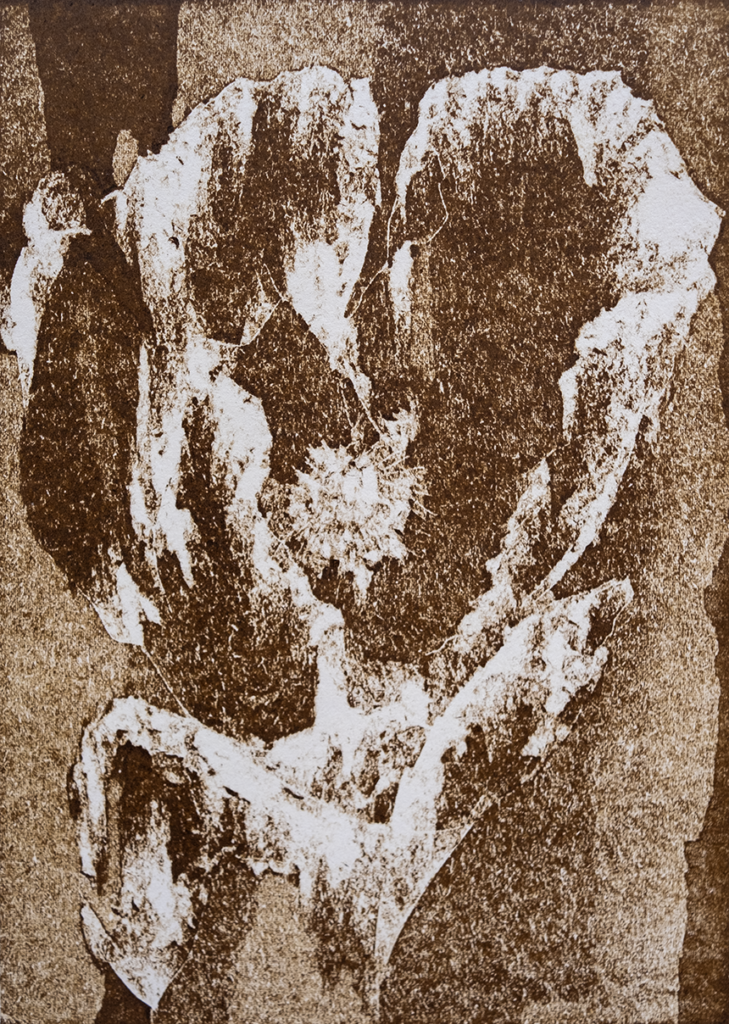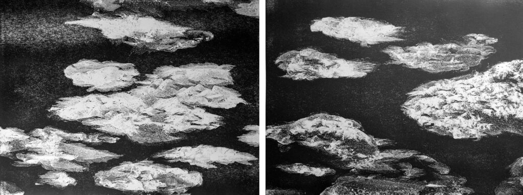 Des gravures et des sculptures inspirées par la matière, minérale, végétale, le ciel, les astres. Engravings and sculptures inspired by materials, minerals, plants, the sky, stars. Ci-dessus 2 gravures rehaussées.