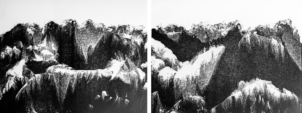 Série des Monts, format 80 x 60 cm / papier dessin 350 gr. puis format 60 x 40 / papier Montgolfier 150 gr.